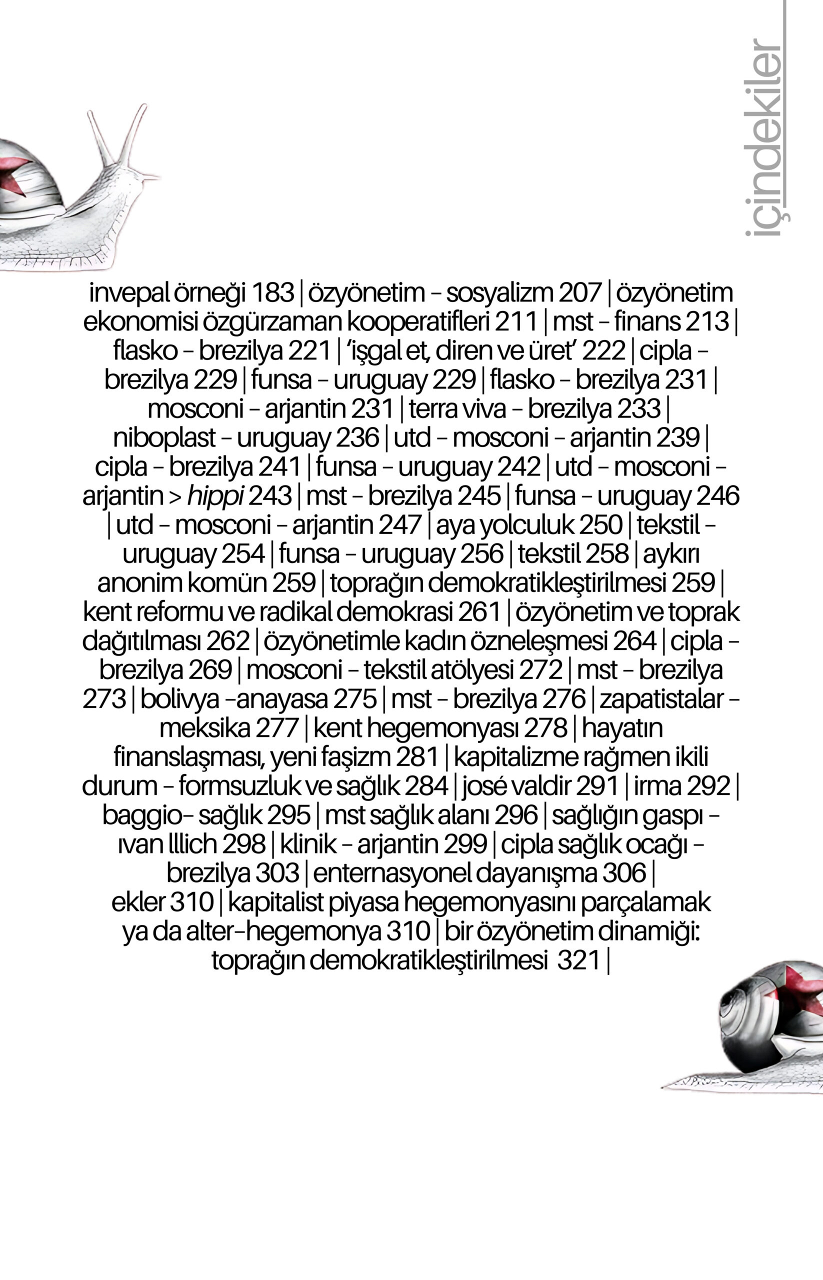 Özyönetim: Dünyanın Sokaklarında Radikal Demokrasi dünyanın dört bir yanındaki toplumsal hareketlerin özyönetim pratiklerini ele alıyor. Dünyayı değiştirmenin daha da yakıcı hale geldiği bu ateş ve kan döneminde, tabandan, yanyanalığa dayanan, yıkıcı ve kurucu bir radikal demokrasinin olmuşluğunu ve olabilirliğini tartışıyor.